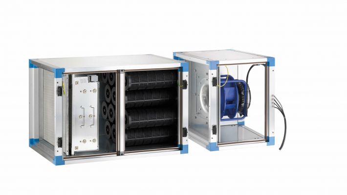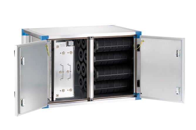Bei diesem sehr kompakten Aktivmodul sorgen Vorfilter, Elektrostat und Ventilator für Fett-, Blaurauch- und Geruchsreduktion und zusätzlich dient der Aktivkohlefilter als Speicherreaktor zur Endbehandlung.